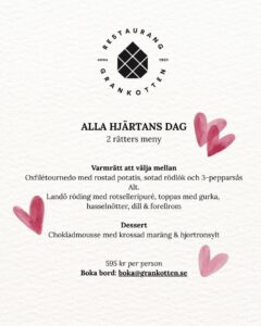 Alla Hjärtans Dag på Grankotten Fira din kära med en god middag och njut av utsikten över Sundsvall i vinterskrud.